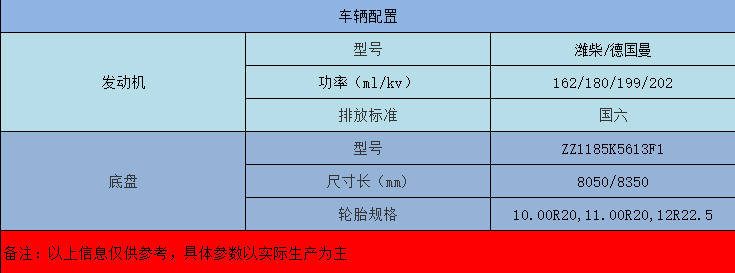 重汽發(fā)動機(jī),十檔變速箱,7T前橋,16T后橋。
